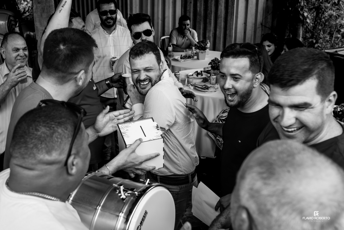 A recepção aconteceu no sítio do pai da noiva, em Campos Novos.